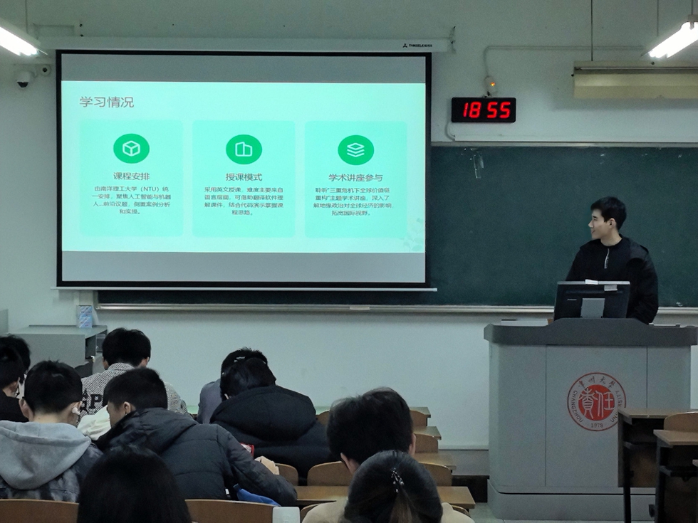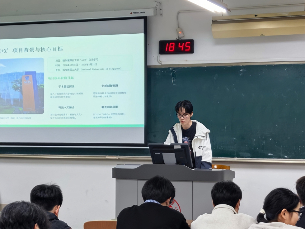 4月2日晚,色情网 举办了新加坡国立大学“AI+X”研学项目交流分享会。色情网 241吴严昊、色情网 252崔智杰两位同学围绕项目学习经历、当地文化体验与生活见闻等内容进行分享,色情网 24、25级全体同学参加。