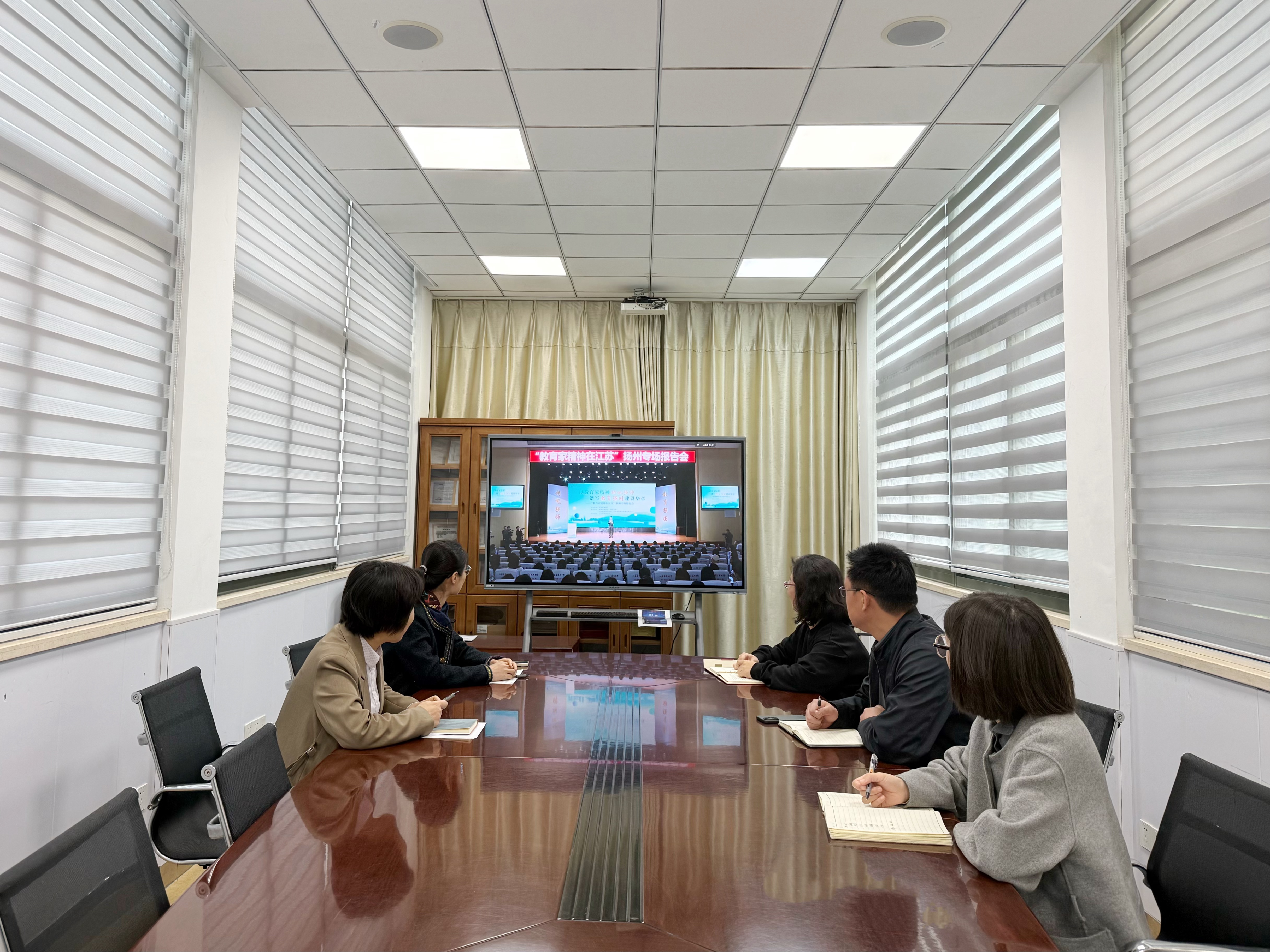 为深入贯彻教育家精神铸魂强师行动,助力教育强国建设,色情网 全体教职工于4月24日集体收看了由江苏省教育厅主办的“教育家精神在江苏”扬州、泰州专场报告会。